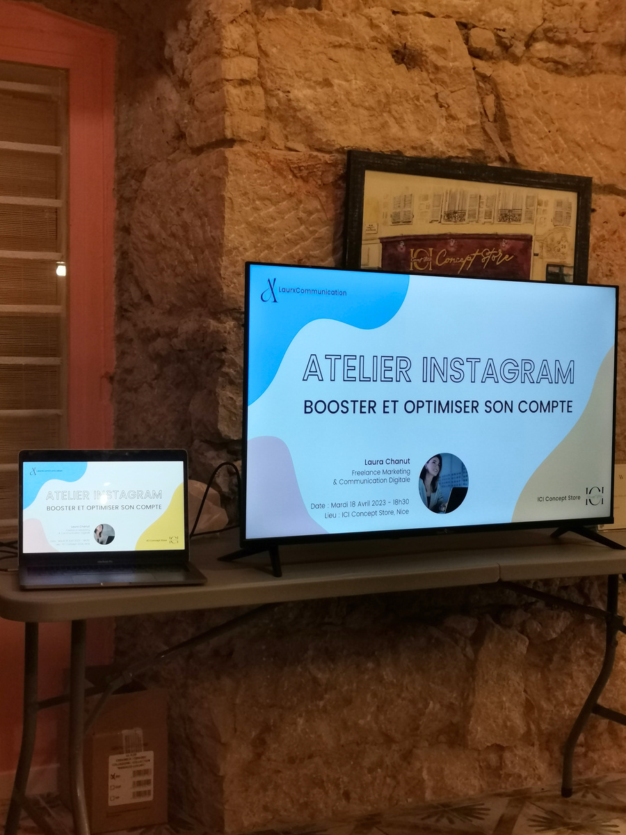 Depuis 2023 je propose des ateliers (en collaboration avec ICI Concept Store, Nice) destinés à des professionnels de tous secteurs pour les aider à booster leur présence digitale.